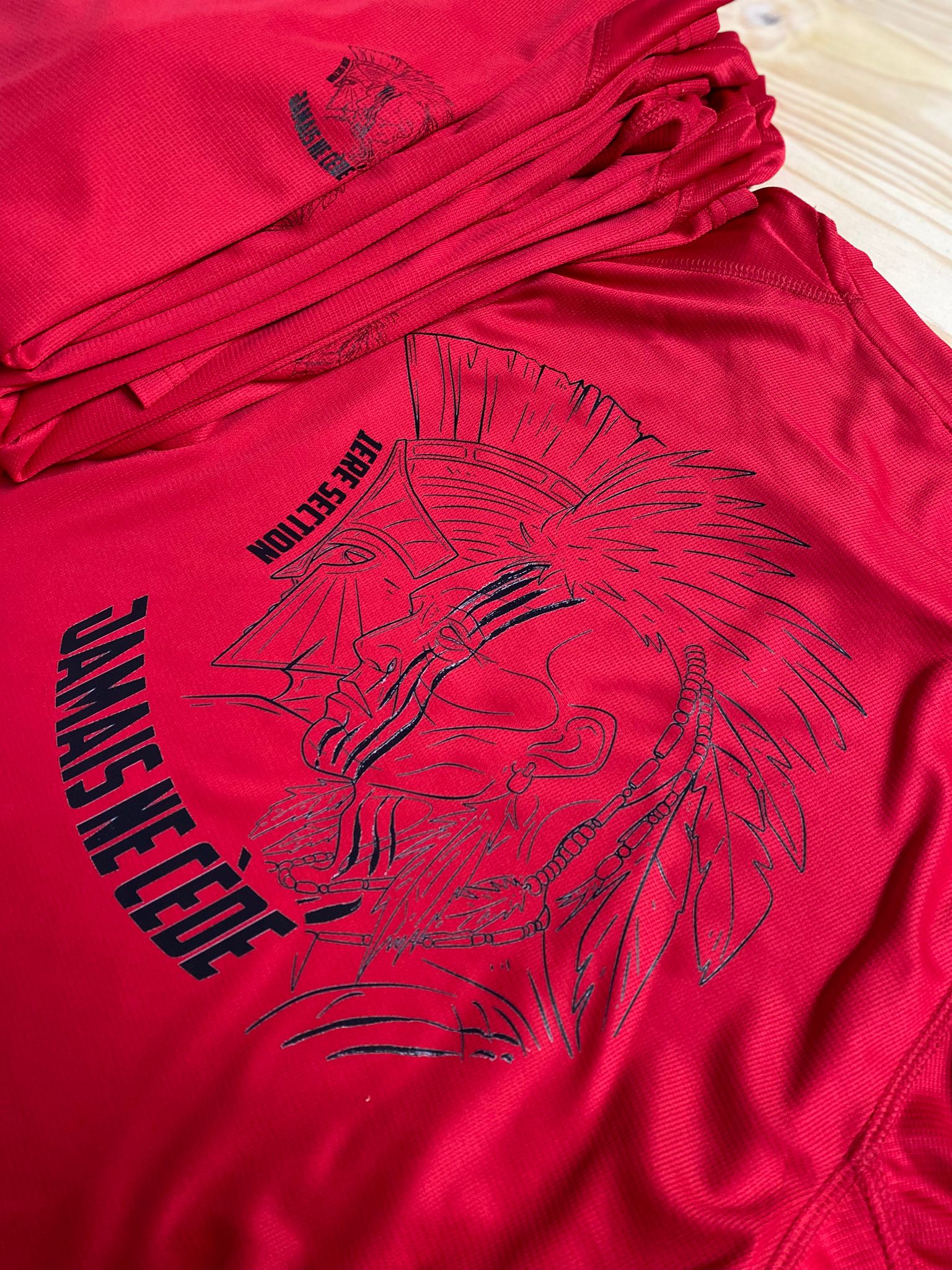 Que tu sois en mission, en caserne ou en repos bien mérité, porte fièrement ton identité avec notre service de personnalisation de t-shirts, sweats, patchs, coins et drapeaux.