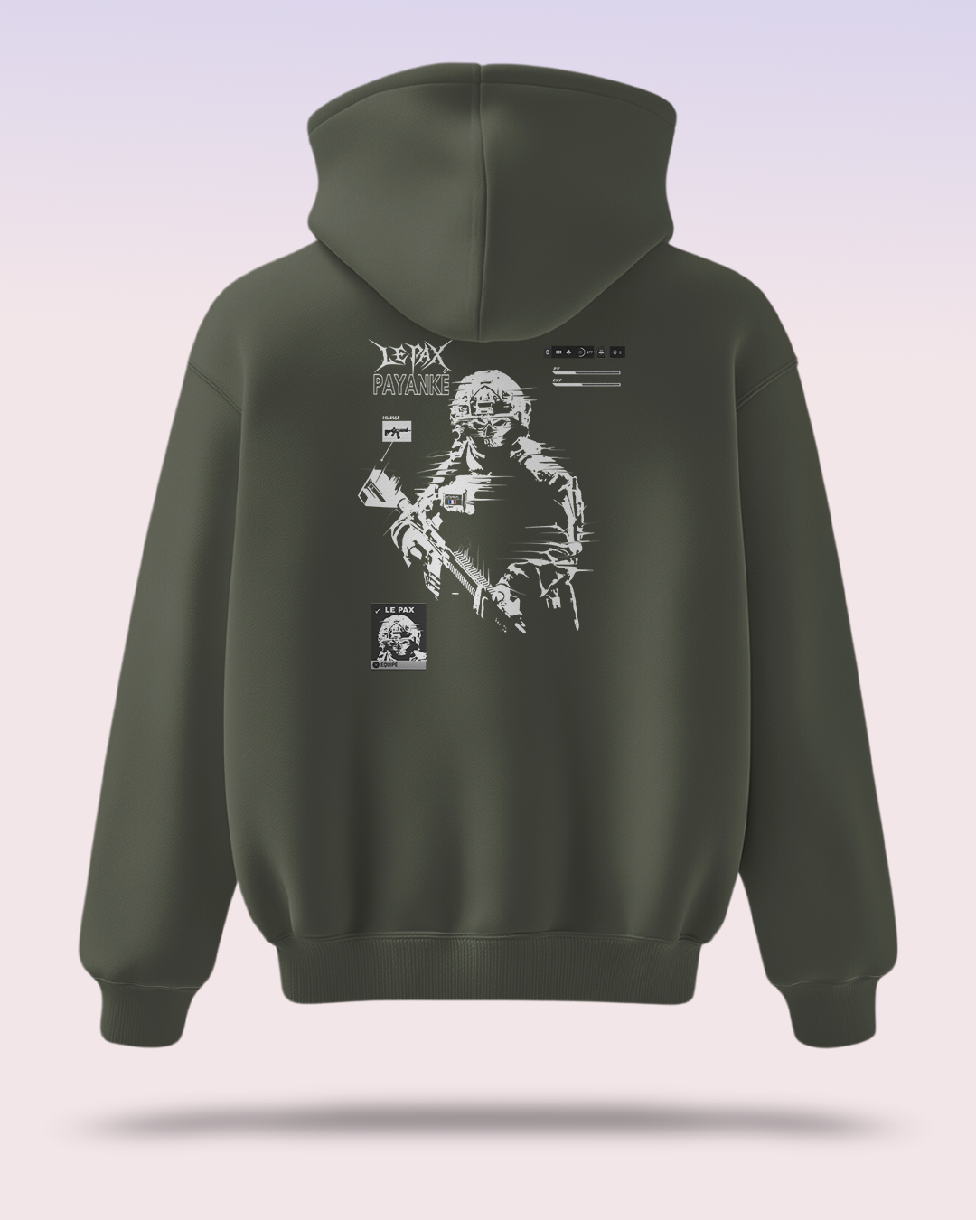 La collab LePax X Payanké représente l’ensemble des militaires français. Le Pax sous son identité unique -Ghost- représente l’anonymat, la rigueur, l’efficacité. Un soldat sans visage, parce qu’il pourrait être n’importe lequel.